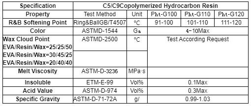 C5/C9 Copolymerized Hydrocarbon Resins has the following characteristics: